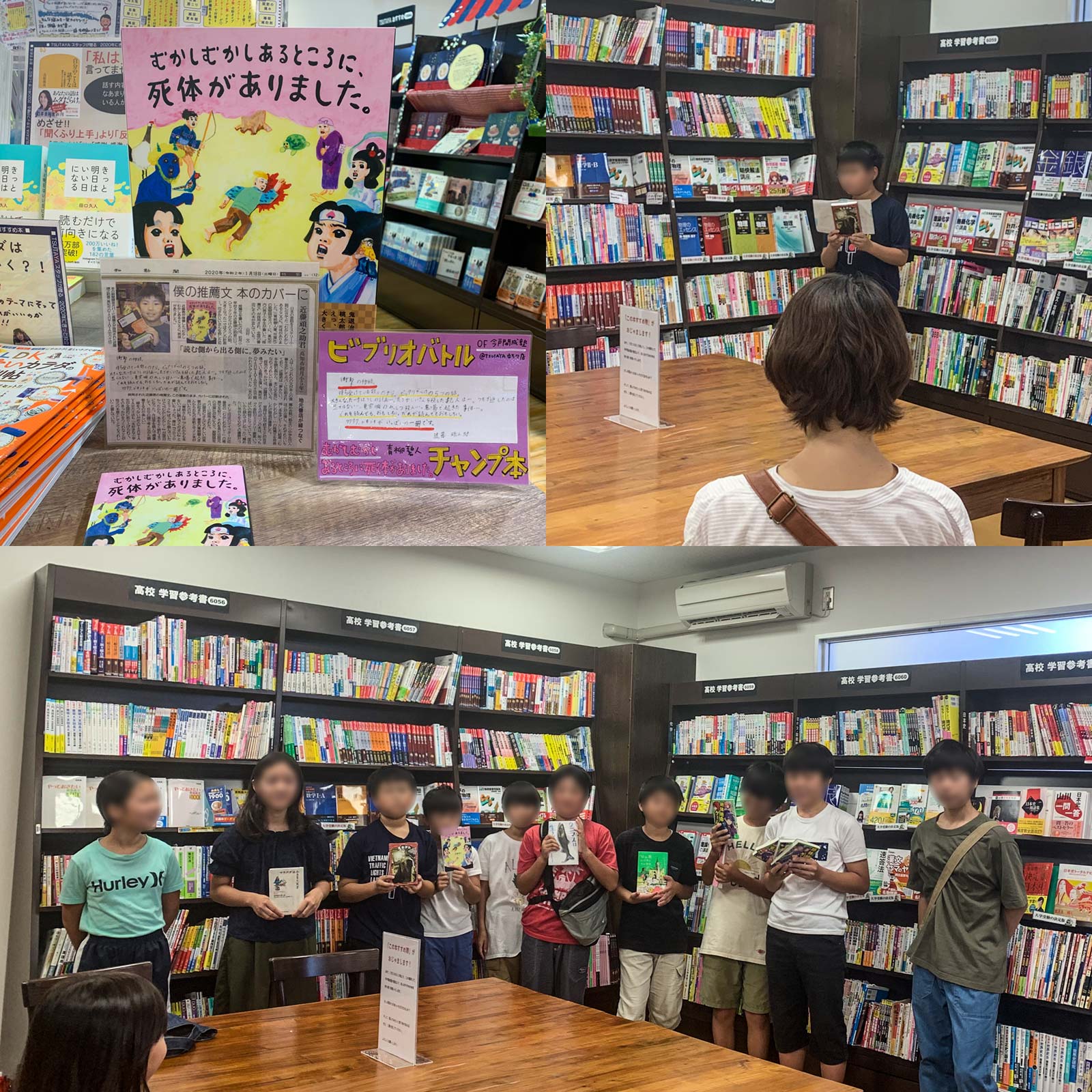 塾内で一回互いに発表を聞き、2019年7月28日(日) お店に来ているおうちの方々、お店の方々にも聞いてもらい、みんなが読んでみたくなった本を決めました。(チャンプ本)